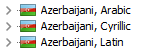 | Azerbaijani (Cyrillic) | az-Cyrl | |